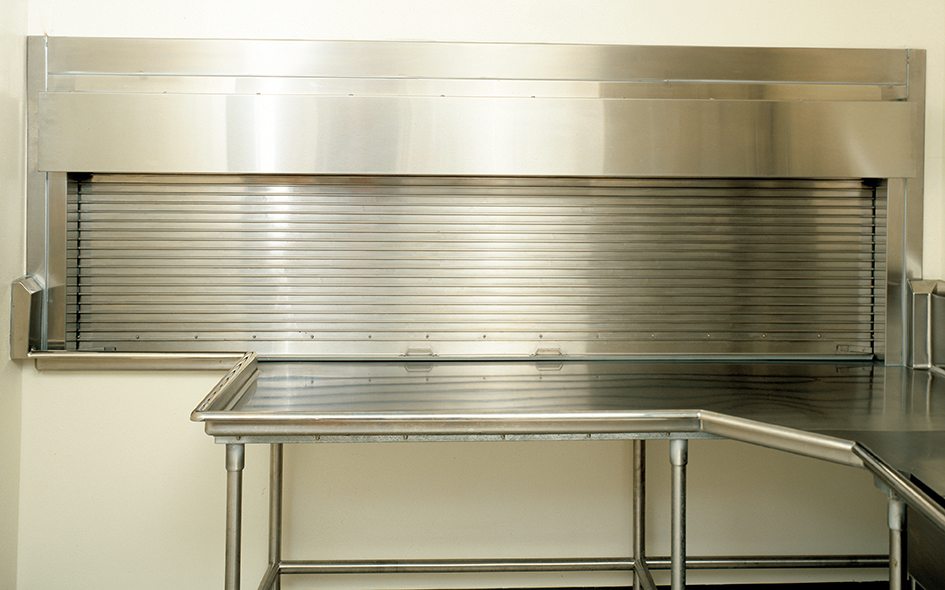 The integral frame / packaged counter door Model 657 combines an attractive finished appearance with the convenience of a factory-assembled unit. These non-rated doors feature a high-quality 16-gauge stainless steel frame, hood and fascia complemented by a 14-gauge stainless steel sill. Available to fit openings up to 12'5" (3785 mm) wide and 6'5” (1956 mm) high, these rolling counter doors have a variety of applications including food service areas.