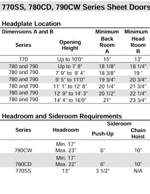 | Counterbalance Assembly | 12" (305 mm), steel stepped rings to minimize headroom and enhance door operation |